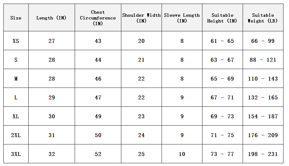 | Size | S, M, L, XL, XXL, XXXL, XXXXL |